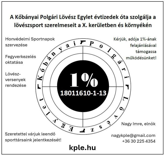 Tisztelt Sporttársak! A Kőbányai Polgári Lövész Egylet minősítő versenyt rendez, melyre minden kedves érdeklődő versenyzőt szeretettel várunk. Időpont: 2025. május 29. (csütörtök), 13:00 - 20:00. Helyszín: 1142 Budapest, Kerepesi út. 22. /Metró lőtér/. Versenyszámok:...